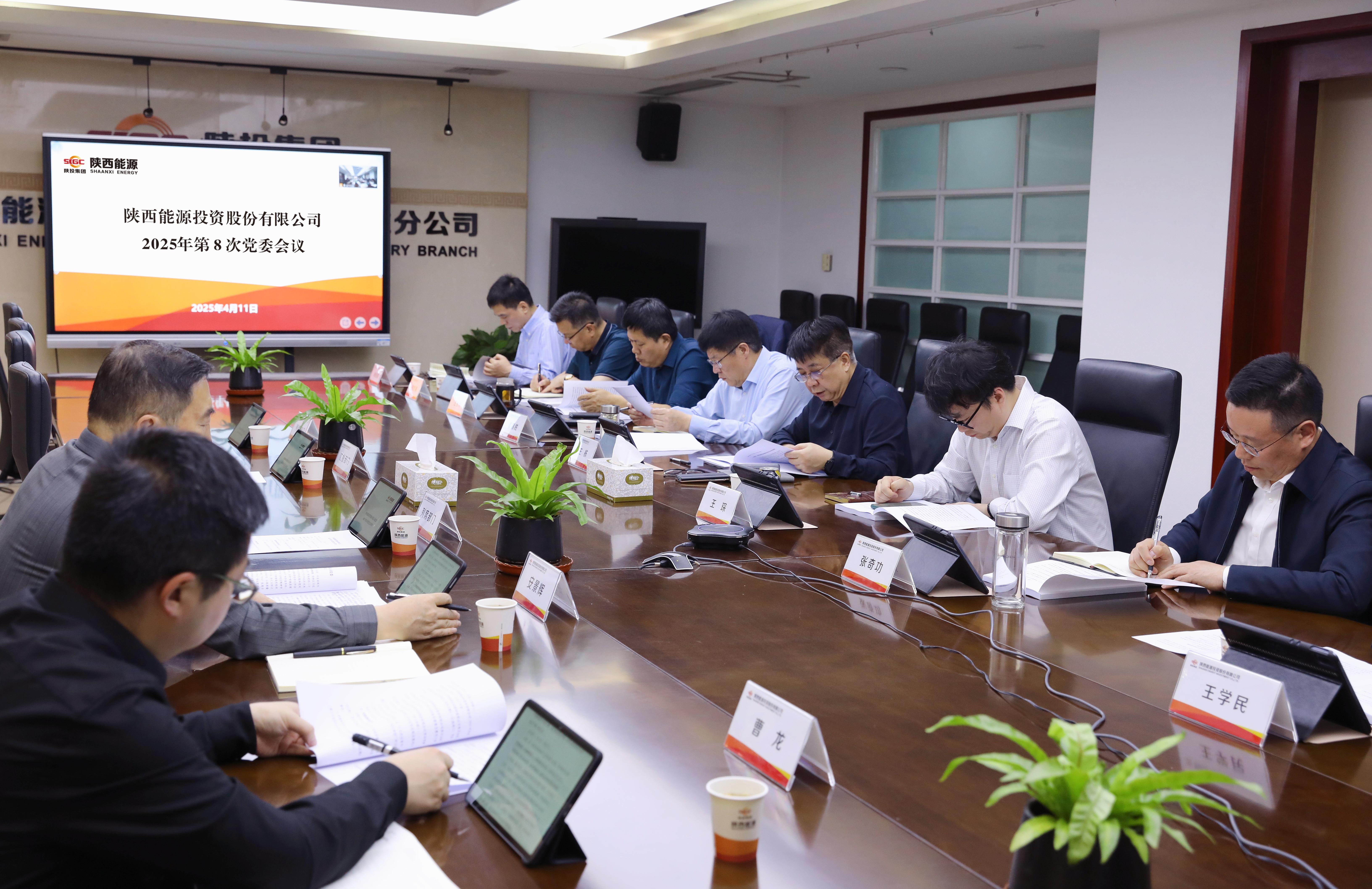4月11日,公司在陜西投資大廈召開2025年第8次黨委會議,深入解讀集團公司黨委《巡視整改方案》,研究部署陜西能源相關整改工作。公司黨委書記、董事長王棟主持會議并講話,黨委副書記、副董事長、總經理王琛出席會議。
