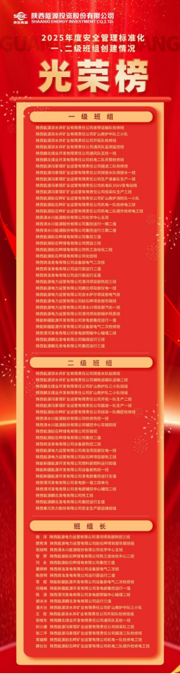 近日,中國安全生產(chǎn)協(xié)會(huì)正式發(fā)布2025年度全國安全管理標(biāo)準(zhǔn)化班組建設(shè)情況的通報(bào),陜西能源投資股份有限公司在此次評(píng)選中斬獲頗豐:35個(gè)班組獲評(píng)中安協(xié)2025年度安全管理標(biāo)準(zhǔn)化一級(jí)班組,占全國總數(shù)的6.36%;22個(gè)班組獲評(píng)中安協(xié)安全管理標(biāo)準(zhǔn)化二級(jí)班組,占全國總數(shù)的3.02%;18名班組長榮獲中安協(xié)“2025年度安全管理標(biāo)準(zhǔn)化班組班組長”稱號(hào),占全國總數(shù)的4.96%。三項(xiàng)指標(biāo)均躋身能源行業(yè)前列,充分彰顯了陜西能源深耕安全管理的扎實(shí)根基和國企責(zé)任擔(dān)當(dāng)。