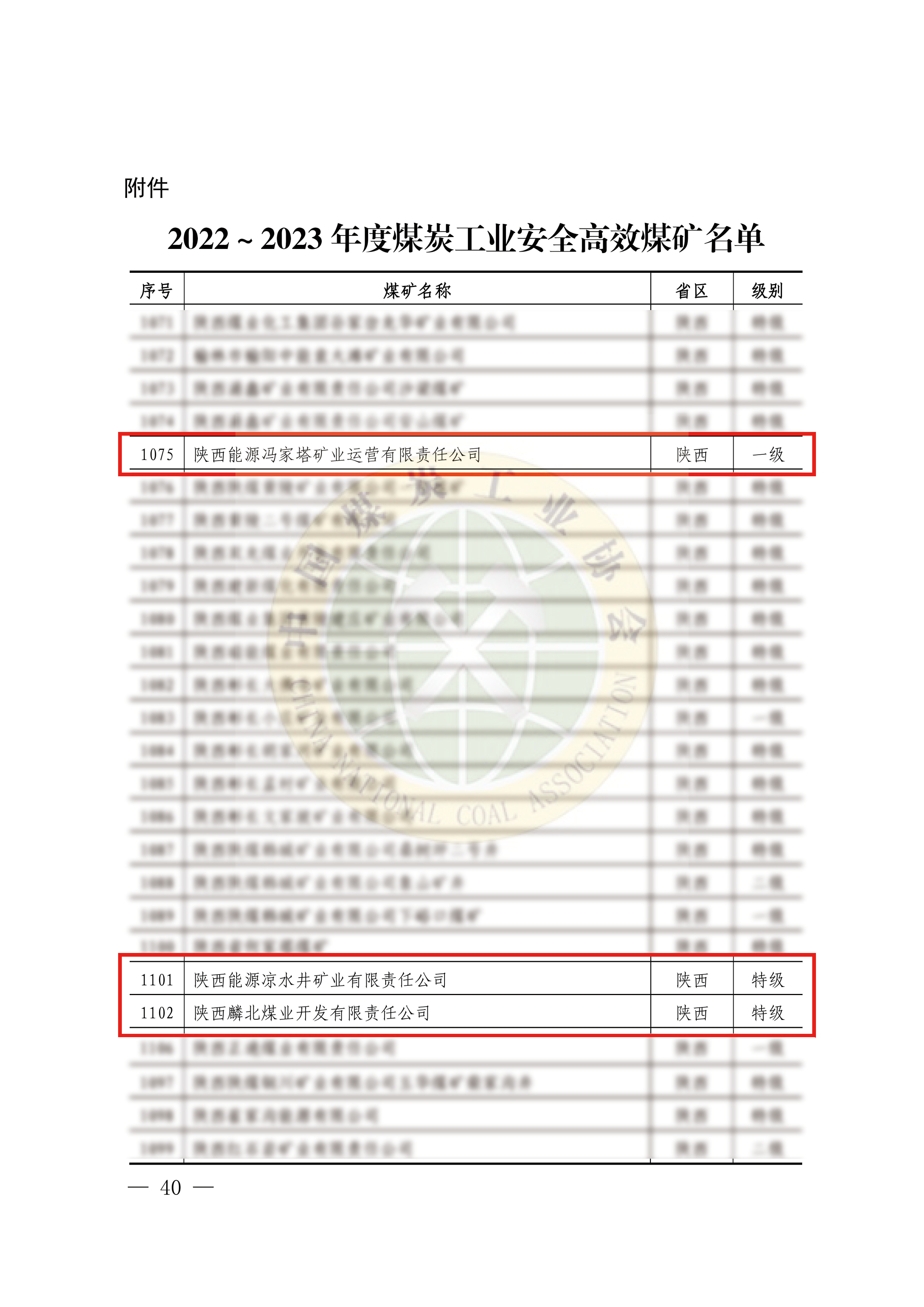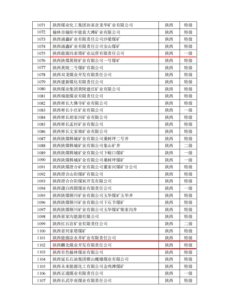 近日,中國煤炭工業協會命名的2022—2023年度煤炭工業安全高效煤礦名單中,陜西能源權屬的涼水井礦業、麟北煤業獲評安全高效特級煤礦,馮家塔運營獲評安全高效一級煤礦。