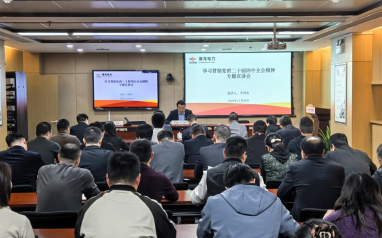 12月30日,秦龍電力召開學習貫徹黨的二十屆四中全會精神專題宣講會,公司機關本部全體人員、陜能新疆部分黨員干部職工代表,共計70人參加了會議。