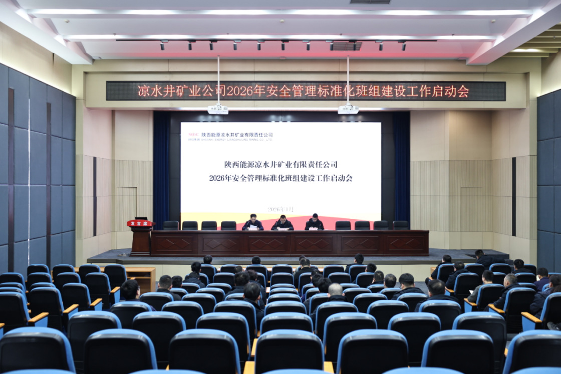 為進一步深化標準化班組建設,夯實安全發展根基,1月30日,涼水井礦業在綜合樓三樓階梯教室召開2026年安全管理標準化班組建設啟動會。公司副總經理、各部門(區隊)負責人、班組建設專干及優秀班組長代表等共計50余人參會。