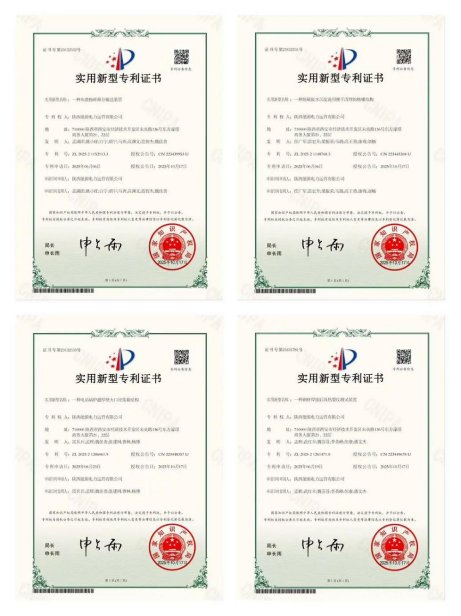 “一種鋼材焊接后再熱裂紋測試裝置”可快速、精準檢測焊縫風險,提升了設備長期運行的可靠性;“一種電站鍋爐超厚壁大口徑集箱結構”有效解決了行業內在焊接難度和結構穩定性方面的共性難題; “一種灰渣粉碎篩分輸送裝置”實現了灰渣處理的一體化與資源化,助力綠色低碳發展;“一種脫硫廢水沉淀池用便于清理的格柵結構”通過優化設計,顯著提升環保系統運行效率,為火電企業環保達標提供了實用化技術解決方案。