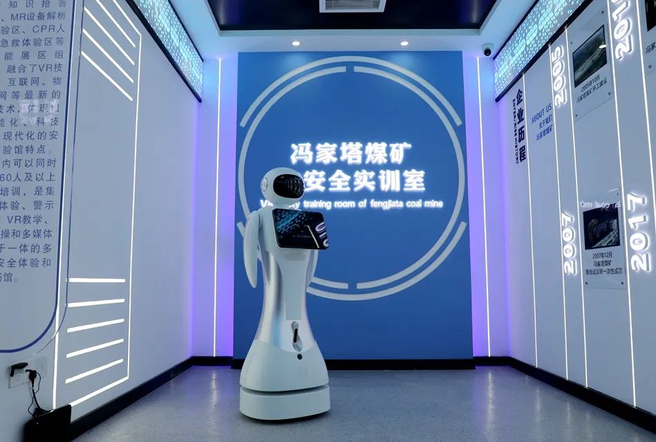 不僅如此,馮家塔運營礦燈房實現(xiàn)了一人一像一柜的智能化、數(shù)字化、超市化管理模式。礦燈、自救器、便攜式甲烷檢測報警儀全部“刷臉”領取,極大地提高了礦燈的日常管理、維護檢測以及存取的效率。在智能化輔助信息系統(tǒng)方面,依托智能化綜合管控平臺,能夠快捷了解生產資訊,實現(xiàn)智能辦公;建設健康小屋,配備專業(yè)的健康檢測設備,如血壓計、血糖儀、心電圖機等,可以對員工的身體健康狀況進行在線監(jiān)測;在對外展示方面,建成了智慧化展廳,展廳聚焦智能裝備、智能系統(tǒng)與平臺,配備有“馮小智”講解機器人,可以通過數(shù)字沙盤、動態(tài)演示與數(shù)字交互,直觀呈現(xiàn)智能科技在企業(yè)智能化升級中的技術成果。