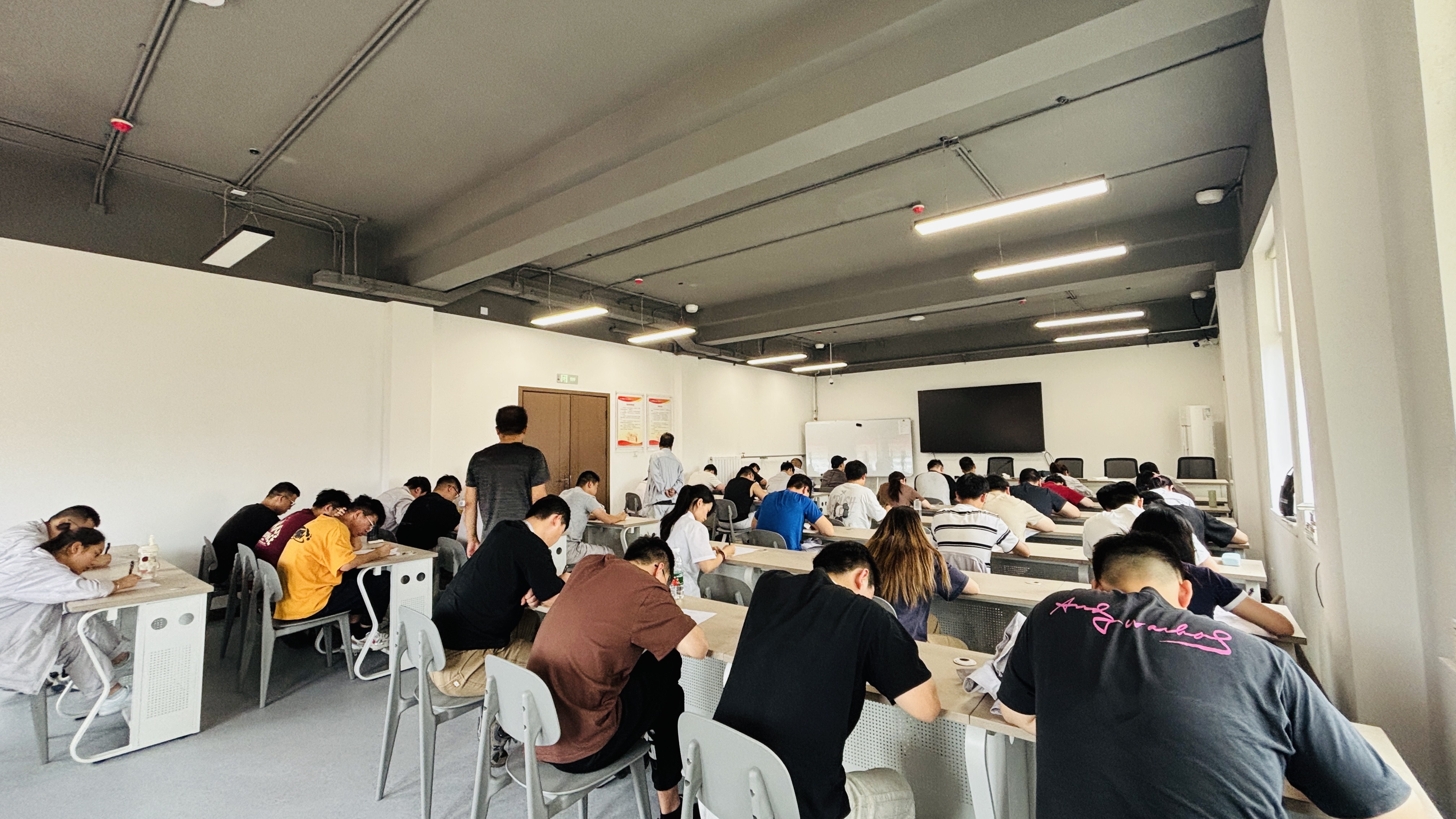 7月10日第一階段結(jié)課考試時(shí),考場(chǎng)內(nèi)安靜得能聽見筆尖劃過試卷的細(xì)微聲響。學(xué)員們凝神聚氣,目光如炬聚焦卷面,時(shí)而眉頭微蹙沉思,時(shí)而奮筆疾書演算,將連日來的所學(xué)所悟傾注于筆端,用嚴(yán)謹(jǐn)?shù)淖鞔鹜瓿蓪?duì)學(xué)習(xí)成果的檢驗(yàn)。
