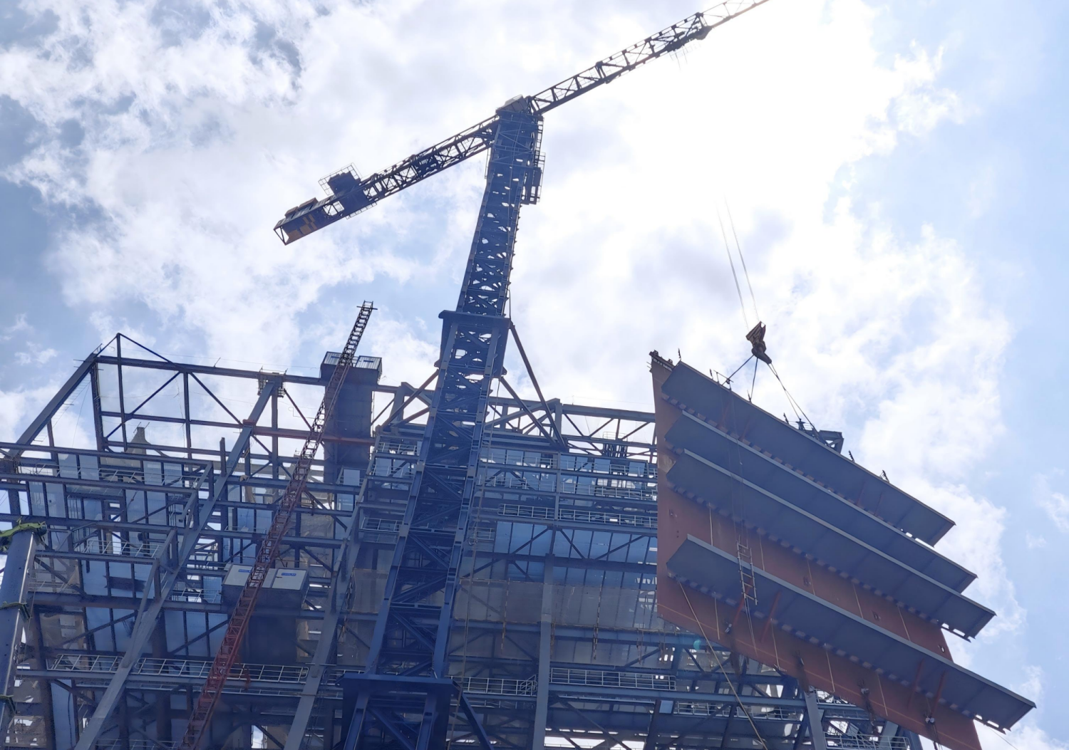 時隔兩日,8月10日,#2鍋爐K1大板梁成功吊裝,這標(biāo)志著該工程#2鍋爐鋼結(jié)構(gòu)安裝進(jìn)入收尾階段,也是繼#1 鍋爐受熱面首吊完成后的又一標(biāo)志性節(jié)點。據(jù)悉,該工程使用的1000MW二次再熱超超臨界Π型鍋爐共5個大板梁,分別布置在K1、K2、K3、K4、K5列,其中K2、K3、K4采用疊梁形式,最大單件為 K4 上梁,重量達(dá)到 143.475 噸,主吊機(jī)械為160噸平臂吊和900噸履帶吊。