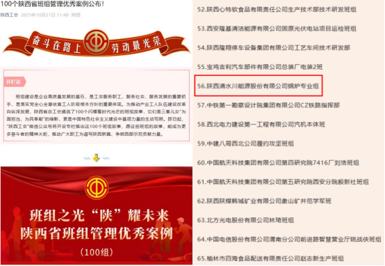 近日,從陜西省總工會傳來喜訊,清水川能源公司設備部鍋爐專業成功入選“100個陜西省班組管理優秀案例”。